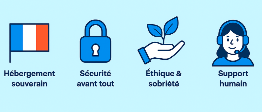 Nos solutions sont pensées pour redonner le contrôle aux entreprises, indépendants et associations, sans compromis sur la sécurité ni la souveraineté.